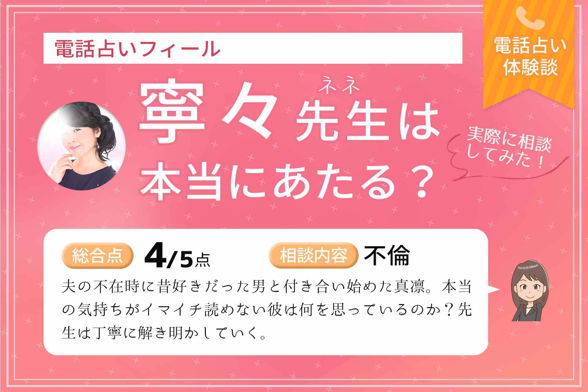 “寧々先生はほんとに話しやすくてすごく親身で色々聞いてくれてお話してくれて安心感がありました!”